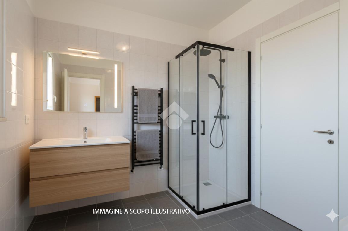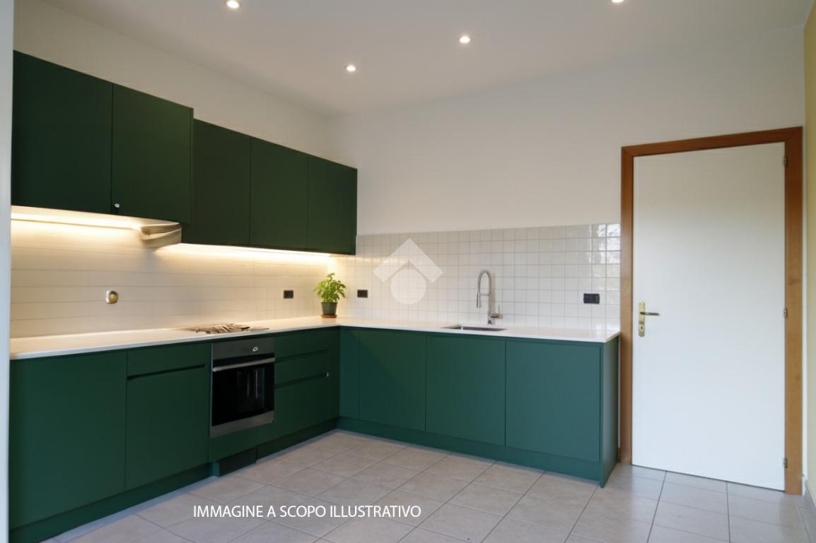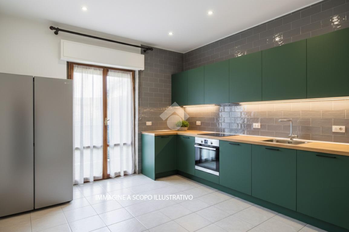 La cucina separata, anch’essa con accesso diretto al terrazzo, offre la possibilità di creare uno spazio funzionale e ben organizzato.