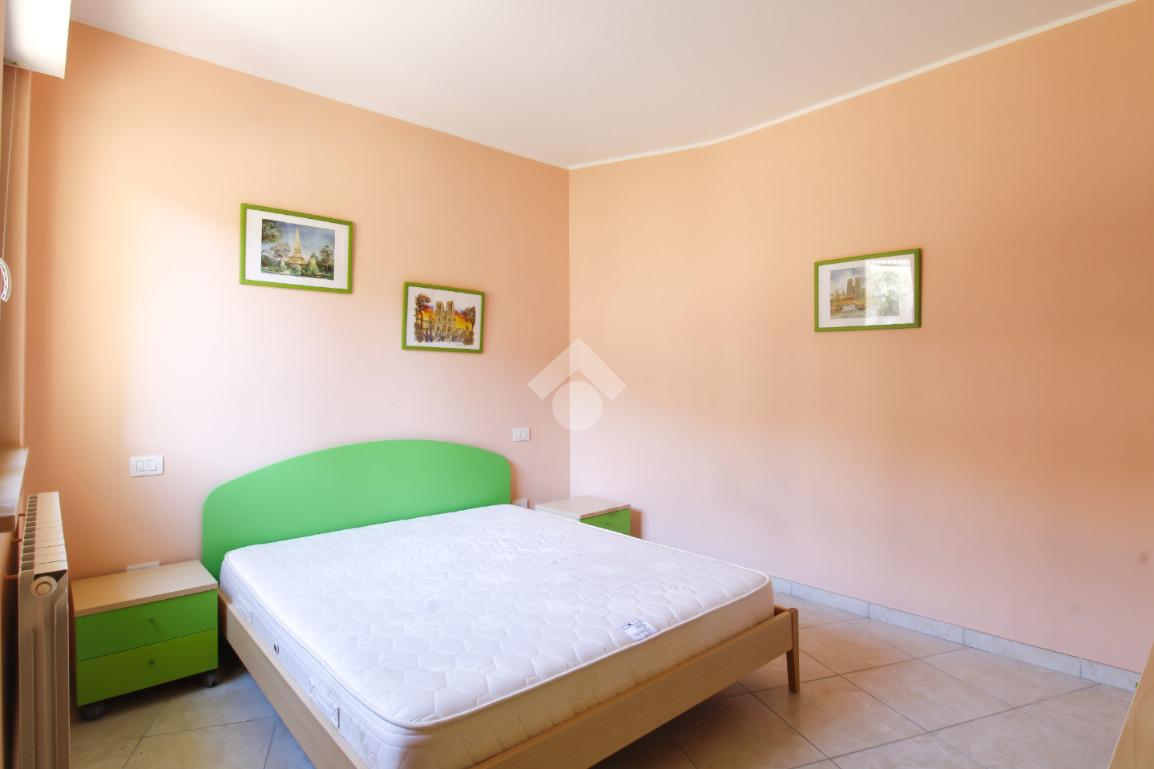 Dal disimpegno si raggiunge la zona notte, composta da una spaziosa camera matrimoniale e da un bagno finestrato dotato di vasca.