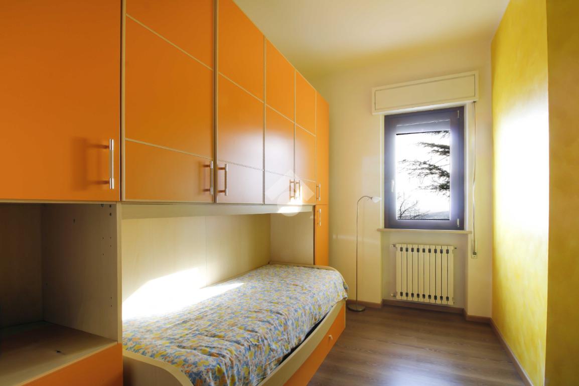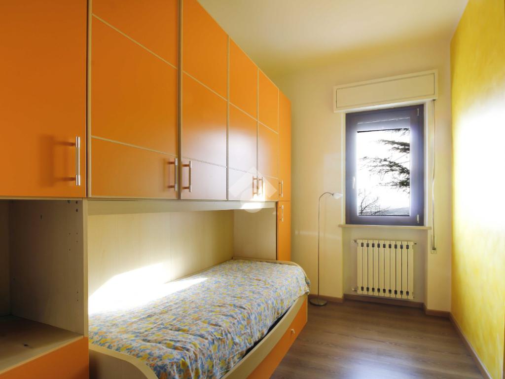 Un comodo disimpegno conduce alla zona notte, dove trovano spazio una camera da letto matrimoniale, una cameretta e un bagno finestrato con doccia, dotato di piccolo balcone con zona lavanderia.