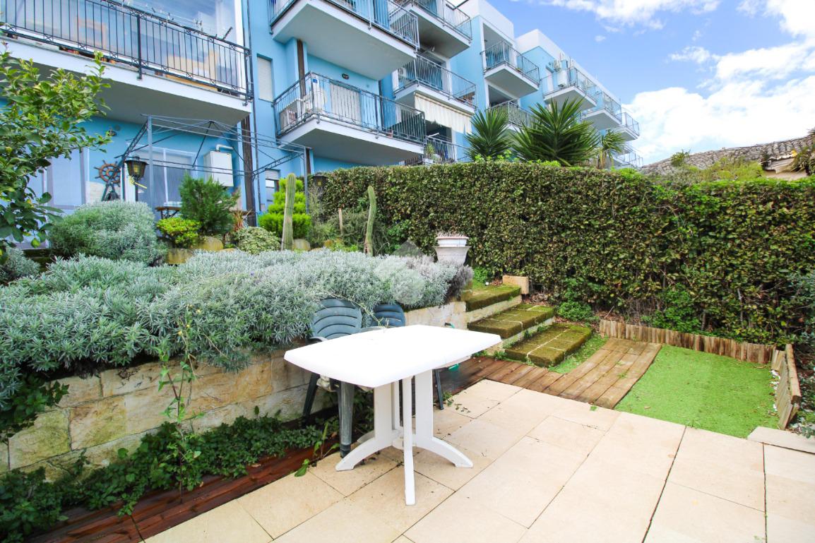 L’immobile si apre su un soggiorno luminoso, valorizzato da una porta finestra che conduce a uno spazio esterno privato con corte e splendido giardino vista mare, perfetto per momenti di relax all’aria aperta.