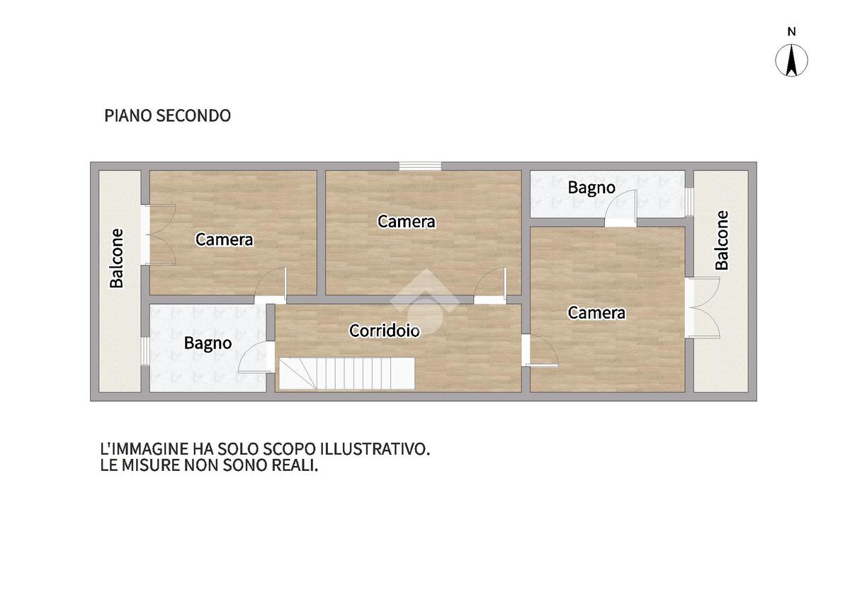 La scala interna conduce alla zona notte composta da tre camere matrimoniali e doppi servizi, di cui uno in camera.