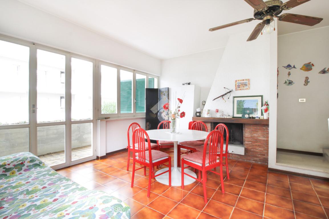 Tramite scala si accede alla casa, dove ci accoglie un ampio e luminoso soggiorno con camino, perfetto per creare una calda atmosfera.