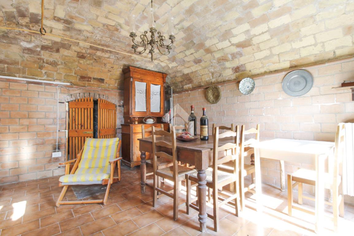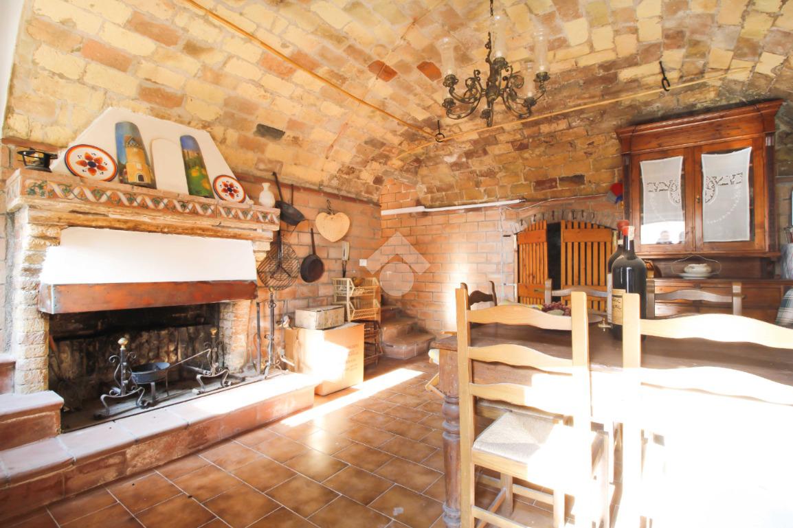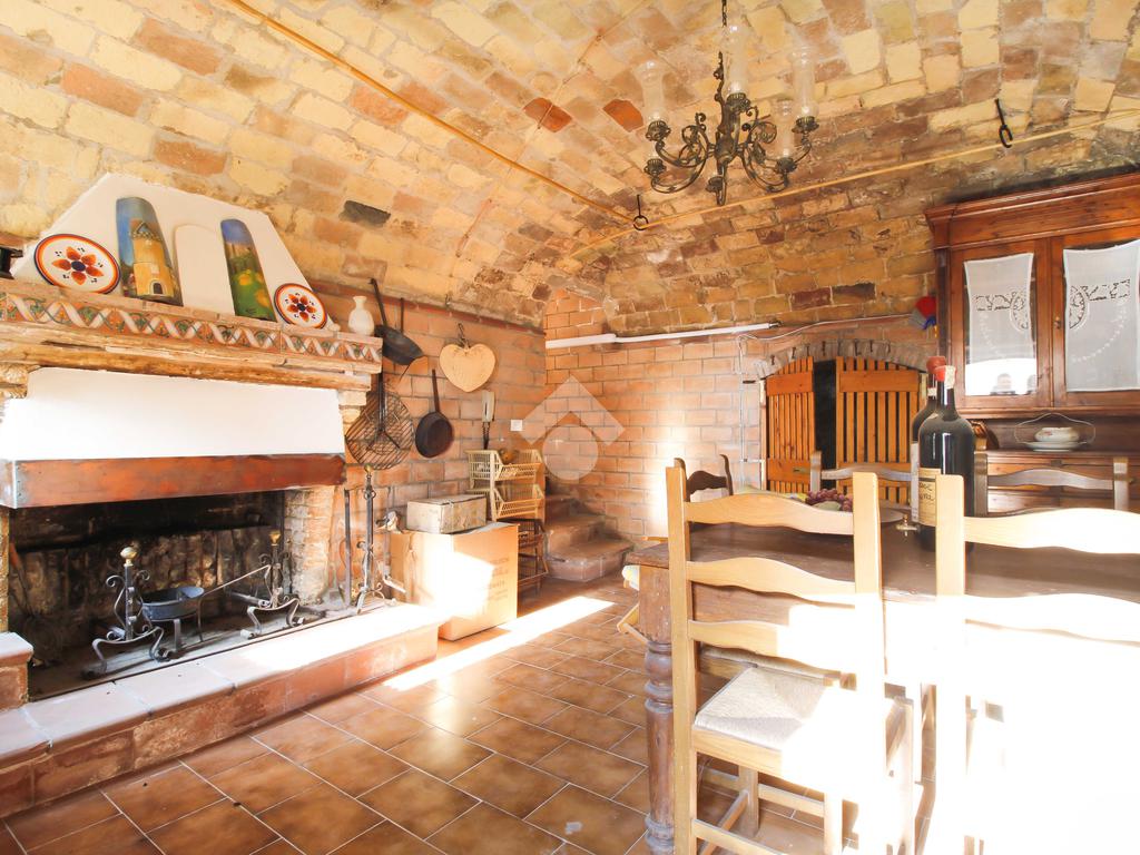 Sempre dal piano principale, una scala interna ci accompagna al piano seminterrato, dove troviamo una cucina caratteristica con mattoni a vista e un grande camino, ambiente caldo e conviviale perfetto per momenti in famiglia o con amici.