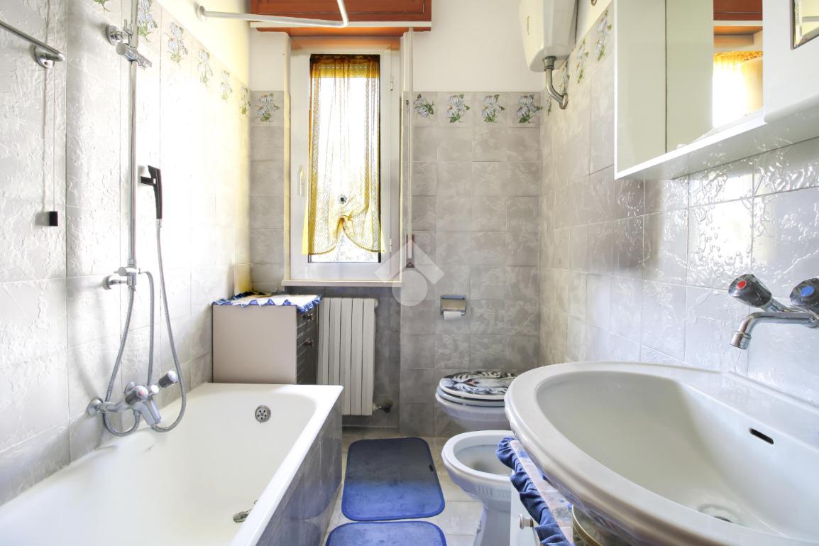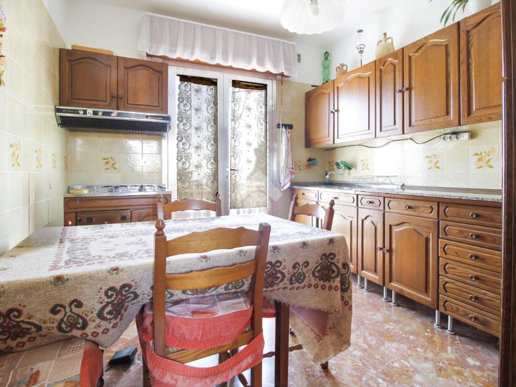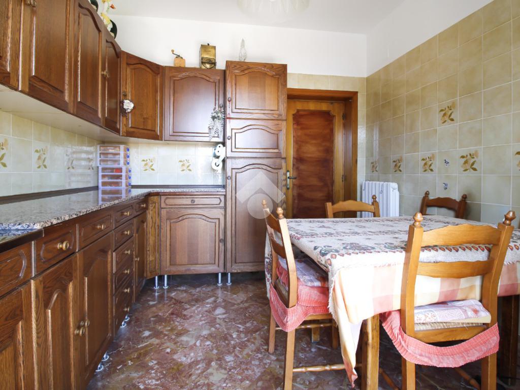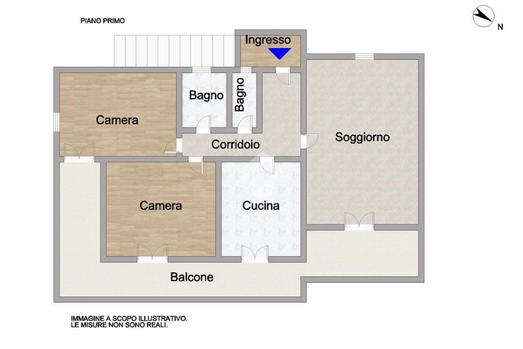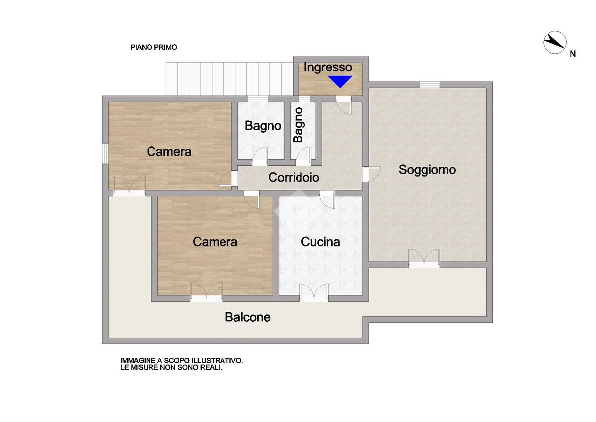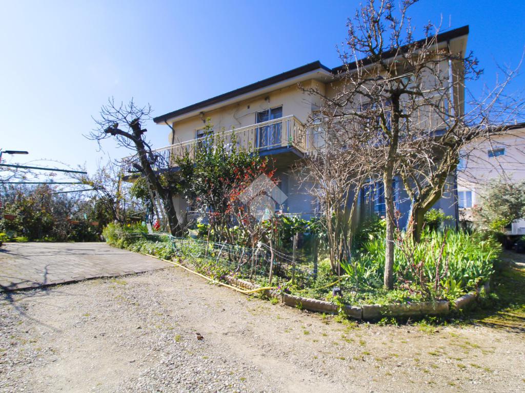 Attraverso una scala esterna si accede al primo piano dove si sviluppa un luminoso appartamento trilocale.